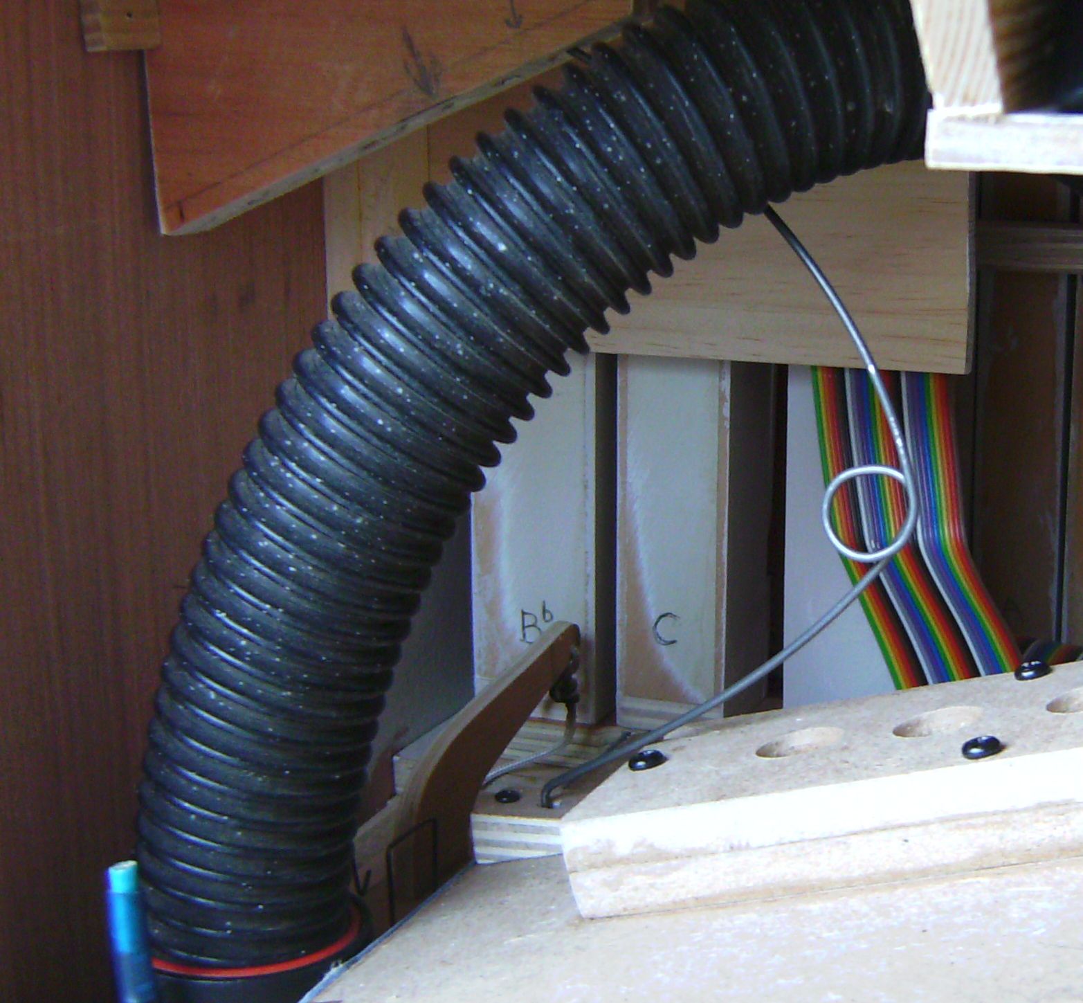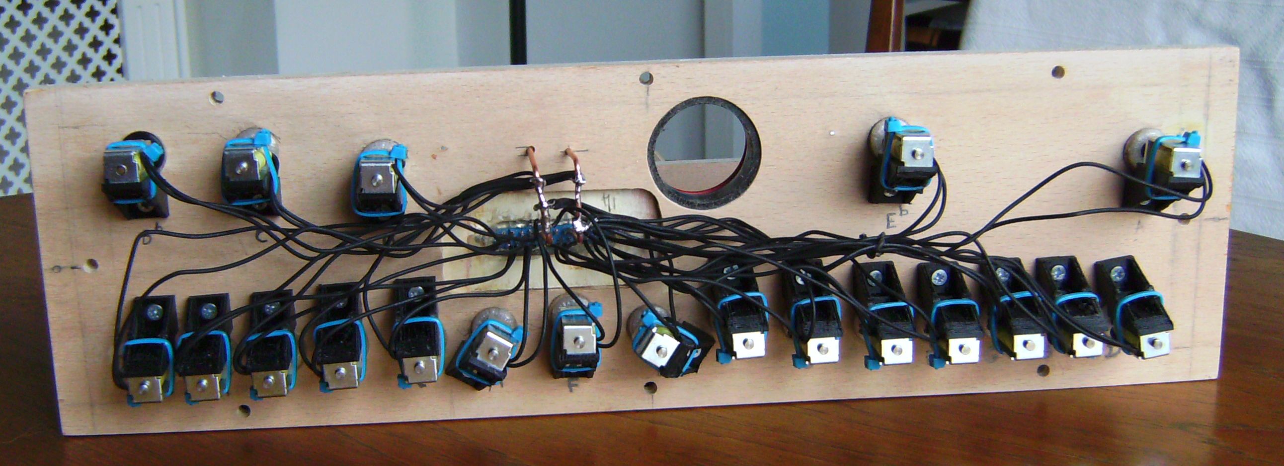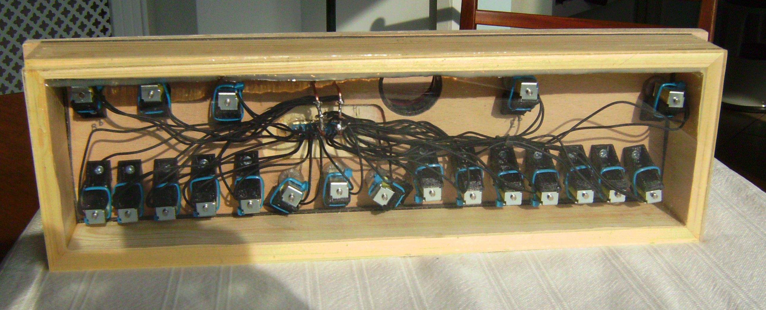 An underside view of the Windchest - showing the wiring of the solenoid valves John supplied