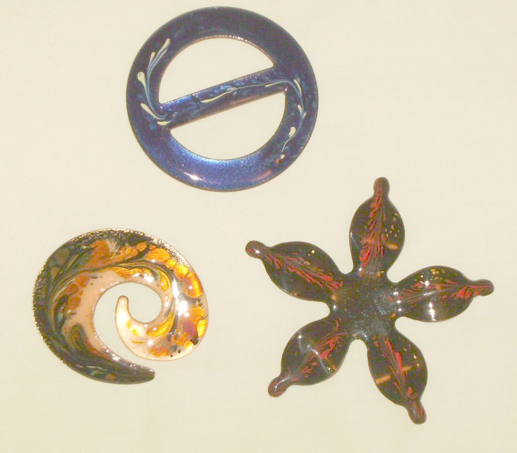 A Scarf Buckle, and two larger brooches she designed