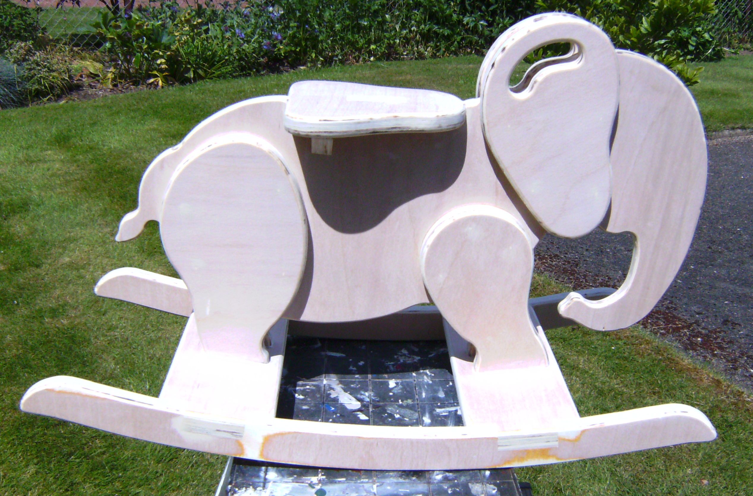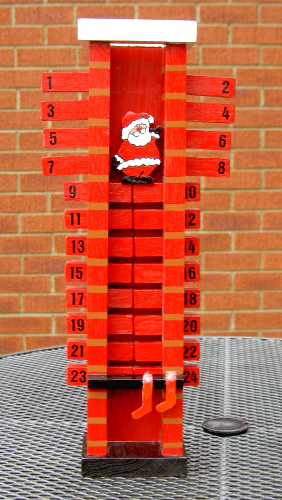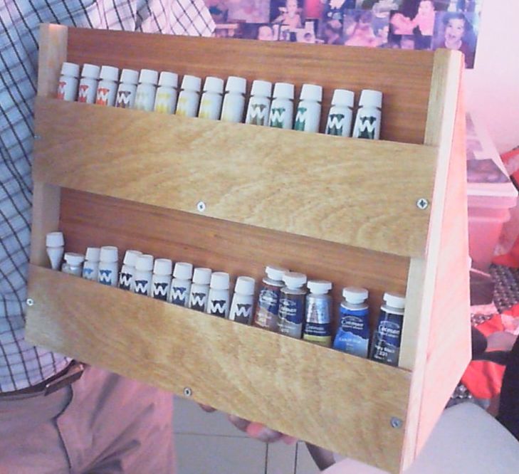 I left the task of painting to the recipient, and the positioning of the holes for wall mounting - which is why it is balanced on a chair for its picture.
