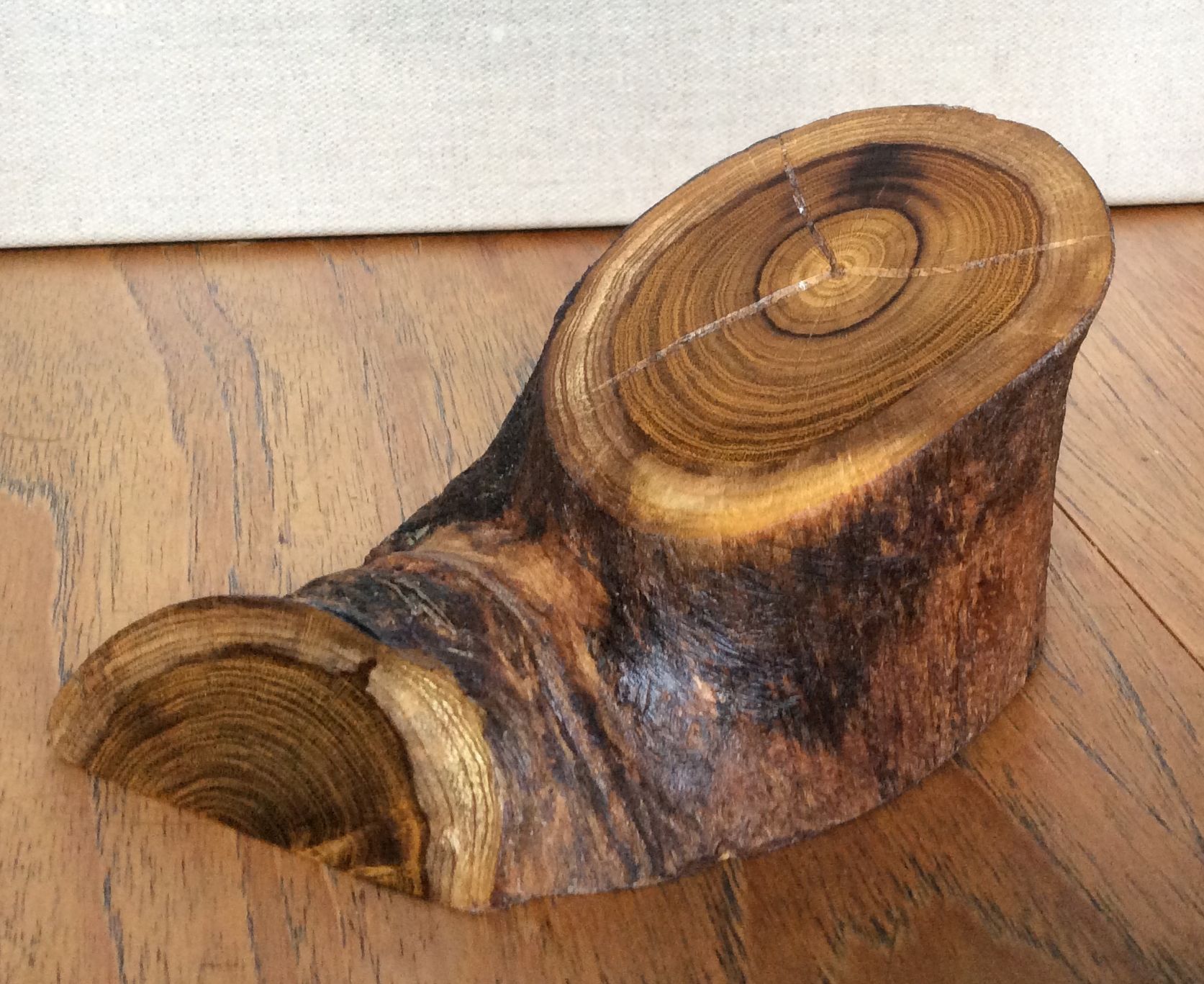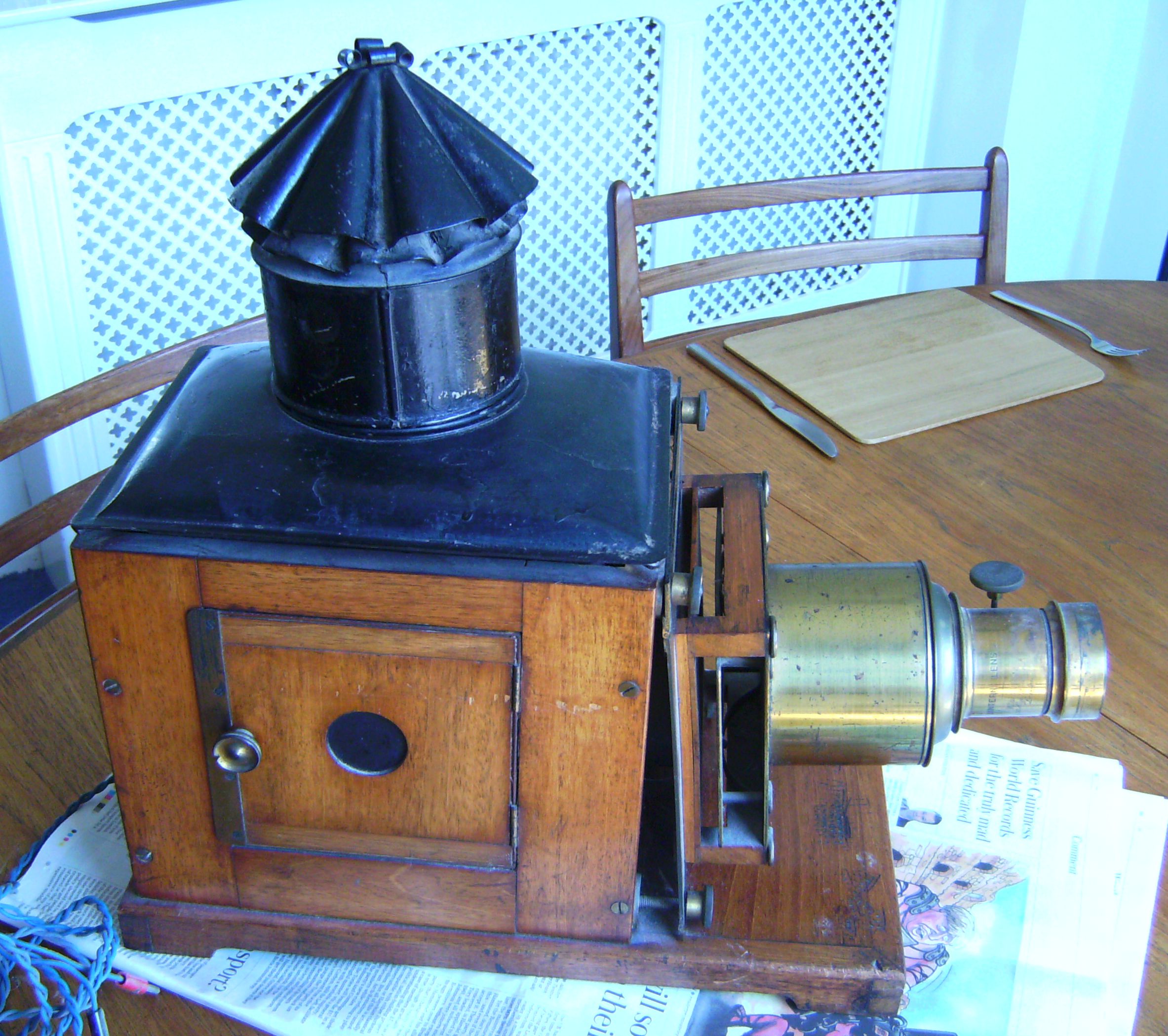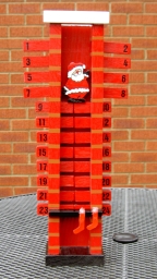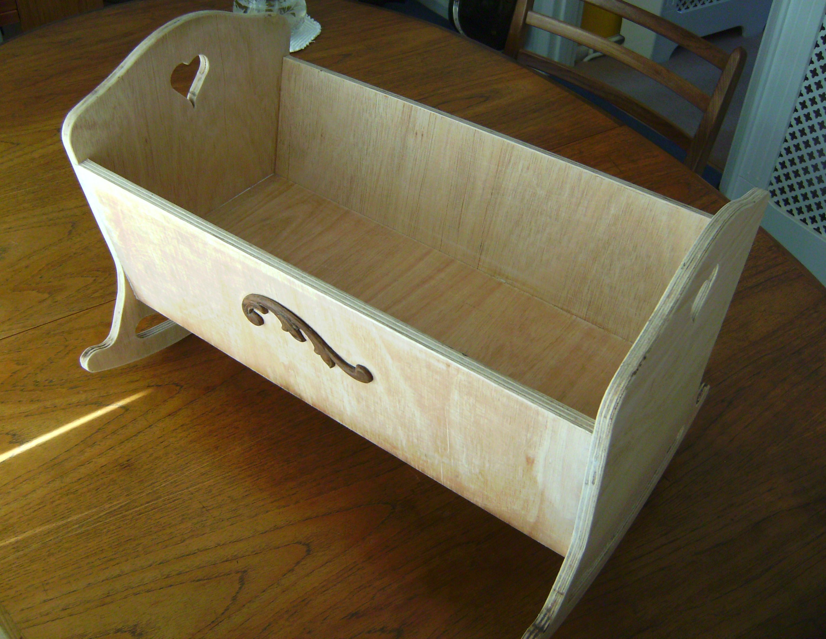 I left the task of painting to the recipient, and the positioning of the holes for wall mounting - which is why it is balanced on a chair for its picture.