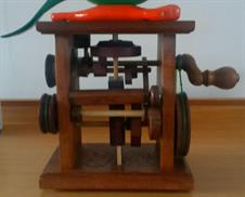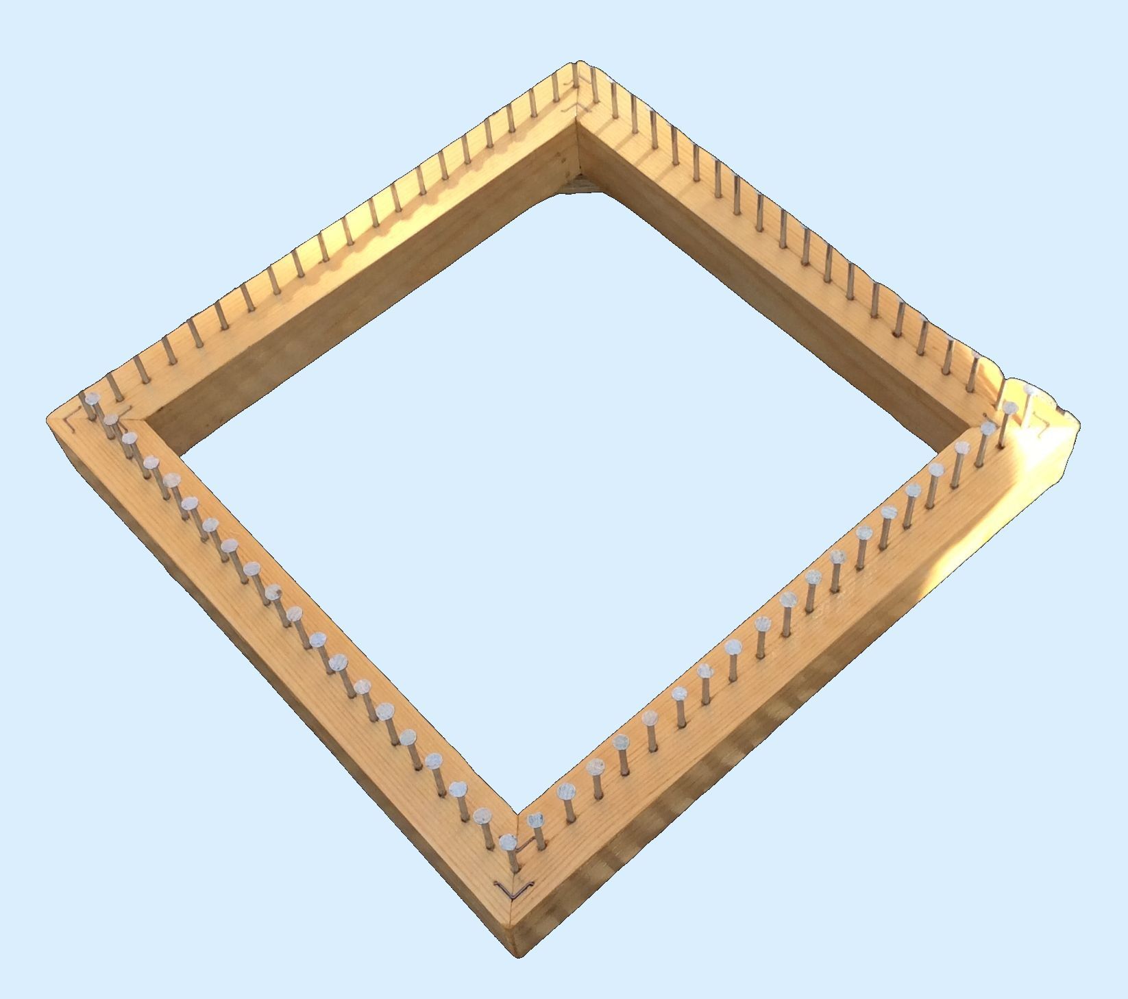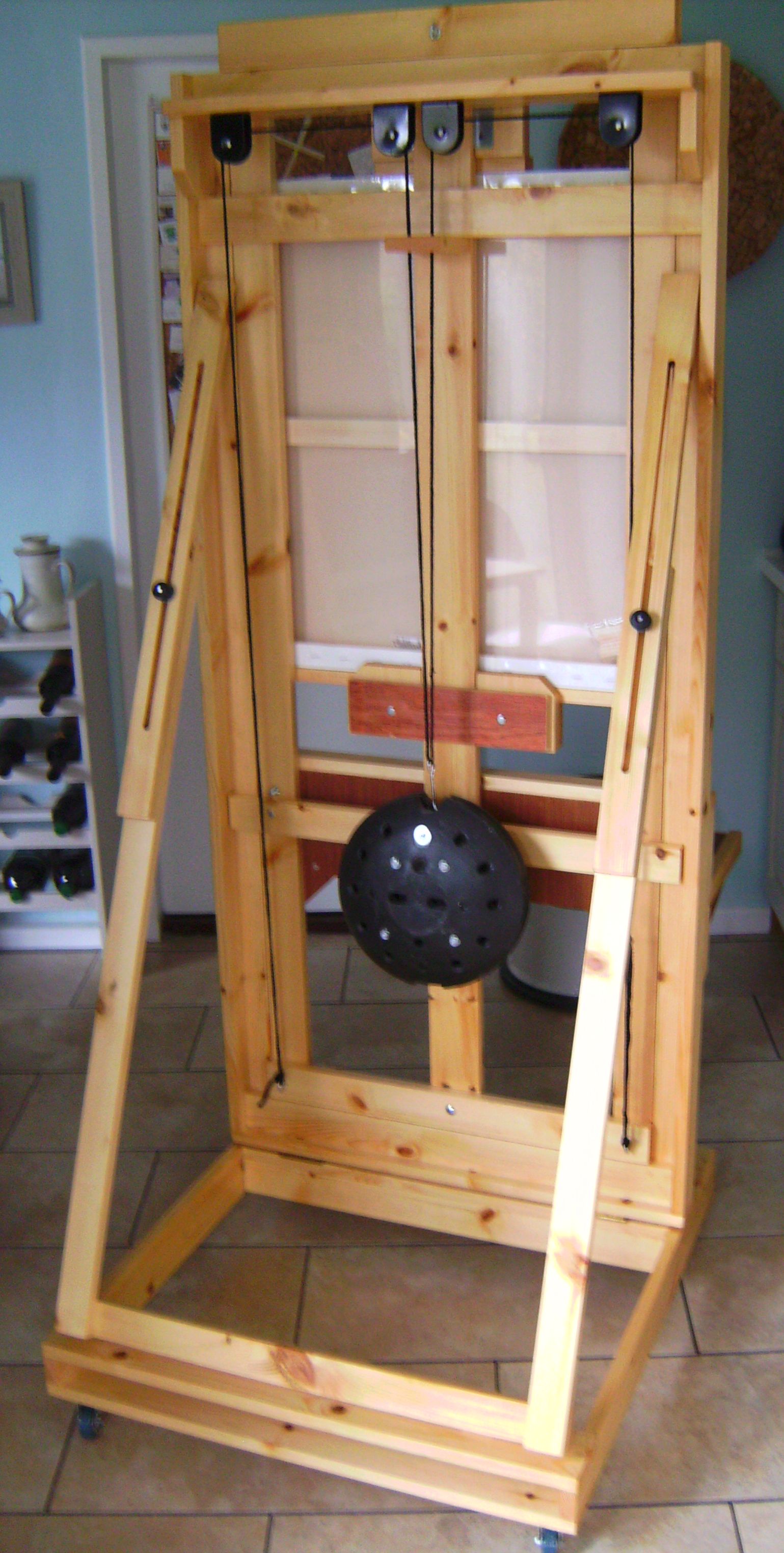 The design has a moving central frame within an outer frame, enabling the canvas being painted to be raised or lowered for ease of access to different areas. To enable the central frame to be moved easily, a system of pulleys and a counterweight is employed, and I was able to use the pulleys from a bicycle storage lift that I had lying around unused.