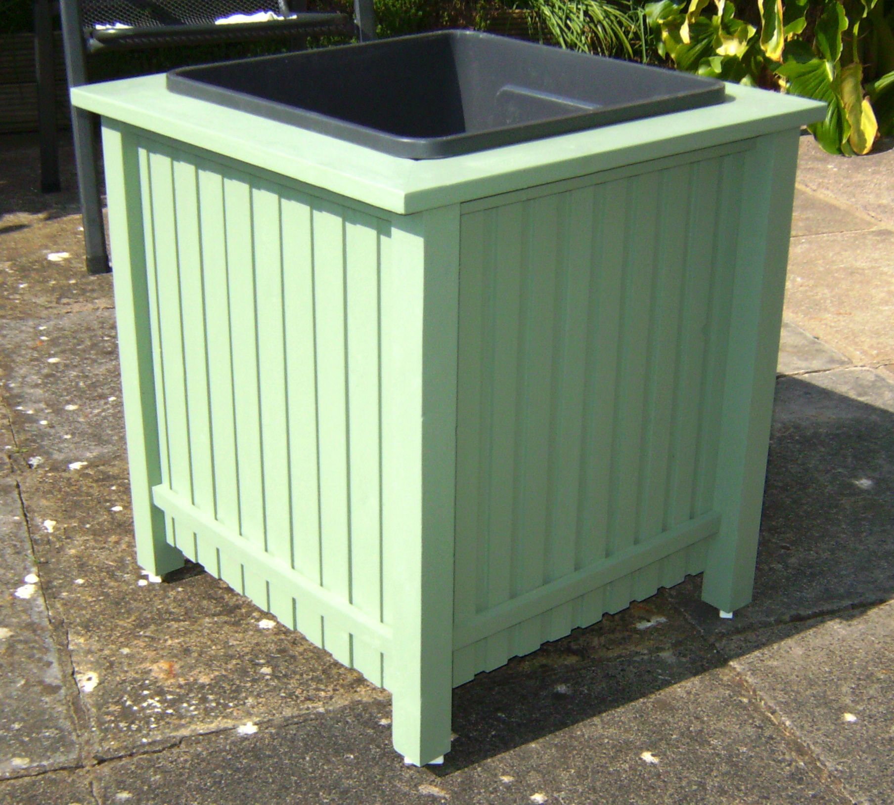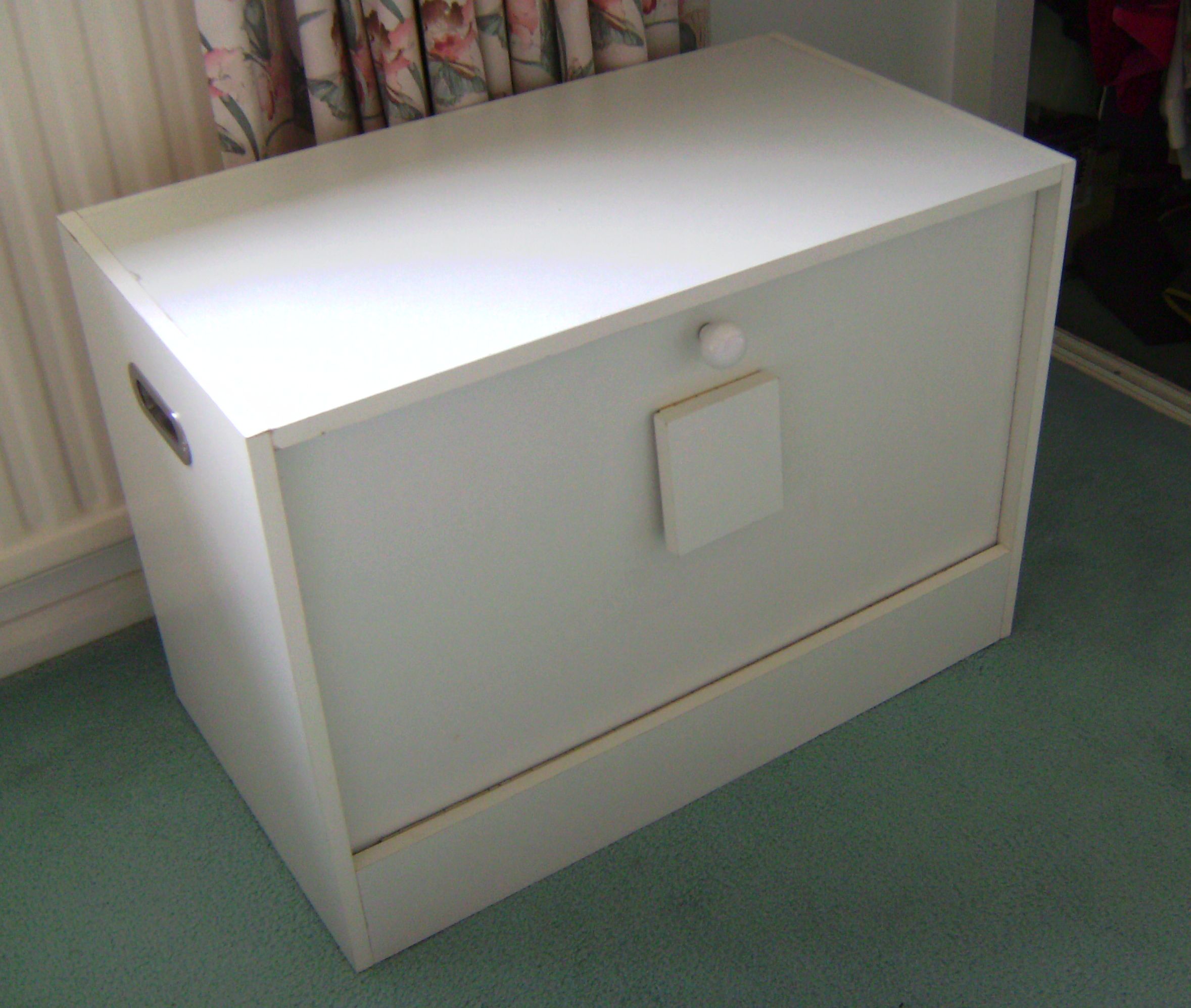 In my usual rush to get things done quickly, I totally forgot to use exterior glue as well as the screws used to hold it together, although I did put mastic under the lid to seal that. I intended to coat it with some garden shed and fence paint I had left over but when I checked the tin it had dried out, so I painted the box with some indoor emulsion from another unfinished tin. Again, I failed to use some melamine primer before applying the emulsion, so with the wrong paint and no primer it probably won’t be long before it all flakes off!