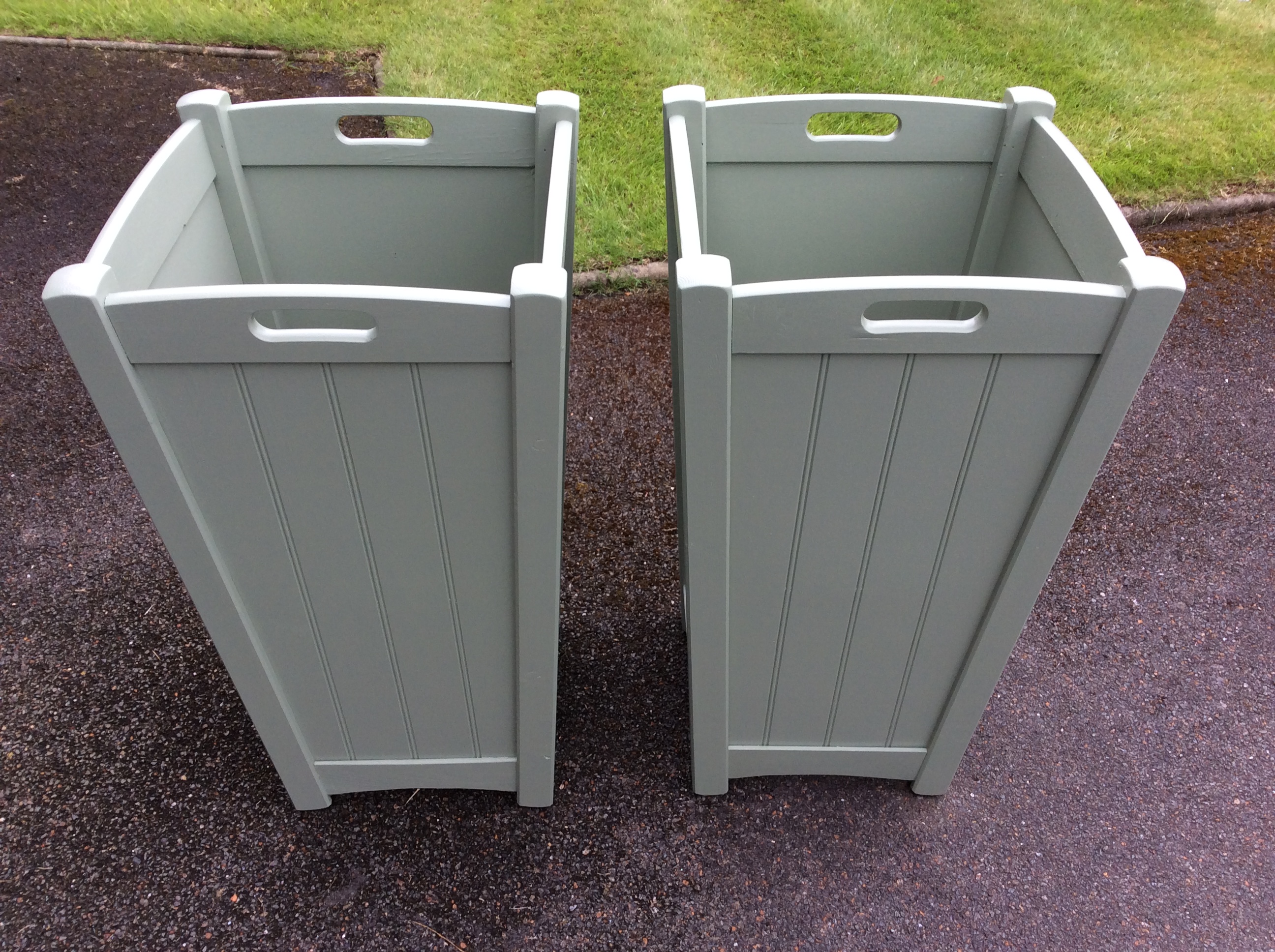 I did intend to use dominoes to fix the new rails, but the Domino tool was too large to go in the gap between the legs, so I resorted to pocket hole screws. Even then I had to shorten the star-shaped driver bit to get that in. After repainting with garden paint – three coats on the new wood – I added some nail-on nylon feet to the bottoms of the legs to reduce water take-up, so perhaps it might take longer for the repaired planters to need renovation again.