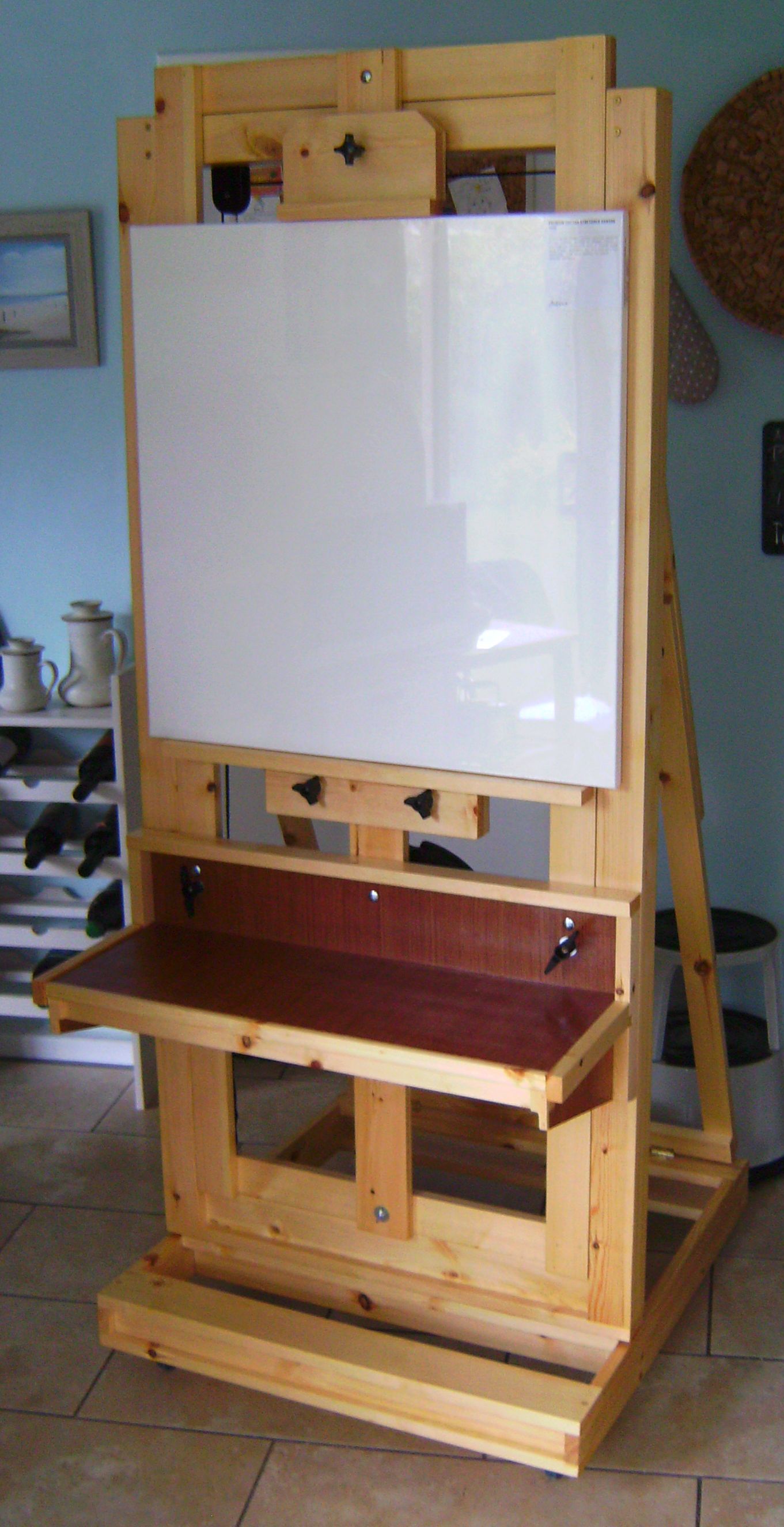 My artist friend – for whom I make picture frames – asked me if I could make her a ‘proper’ easel, so I looked around on the ‘net and ended up being impressed by this design, so got the plans.
